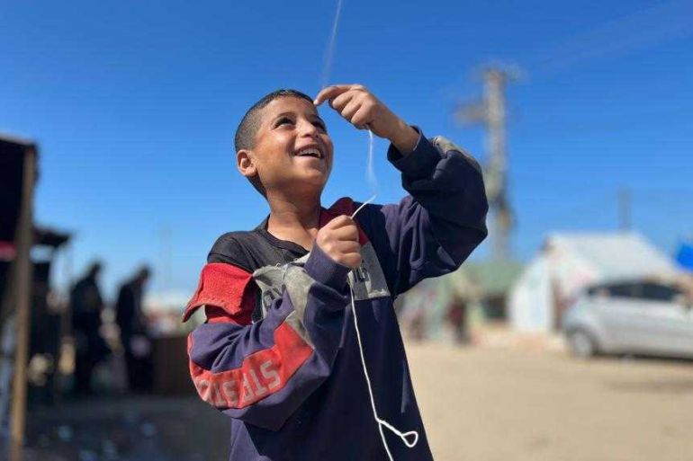 Rafah, Gaza Strip – The colourful kites fluttering in the skies of Rafah belie the reality they soar over: ragged tents packed tightly together, and lines of people trying to find food, water, and firewood. Running in and out of it all are children, brief smiles illuminating their exhausted faces as they look up at their flying miracles.