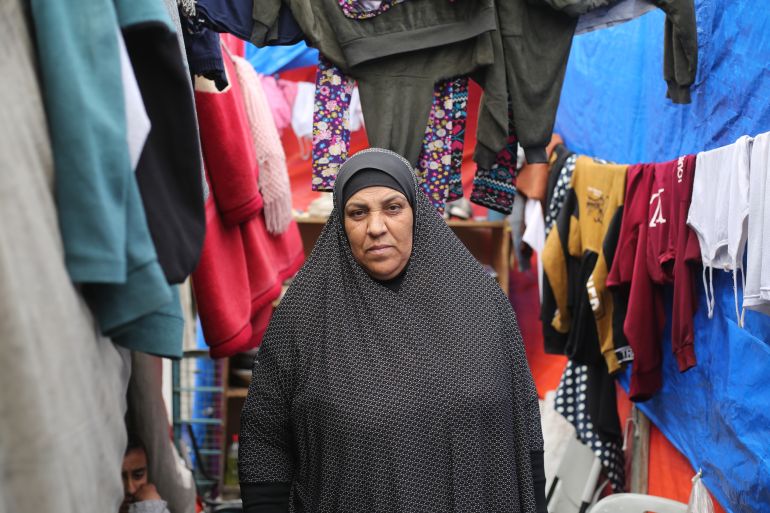 Most civilians in Rafah are staying in residential buildings or sleeping on the cold streets in tents. Abdel Raheem and her husband are staying in a middle school for girls that is now an UNRWA shelter