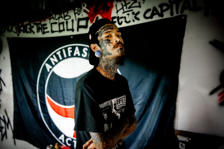 “Punk means freedom,” says Ng La, his face and body covered heavily in tattoos.