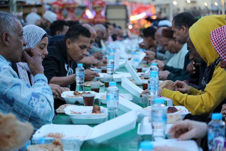 Cairo, Egypt – An hour before iftar time, people start to slow down amid the hustle and bustle of Sayeda Zeinab and gather on a street facing the Sayeda Zeinab Mosque.