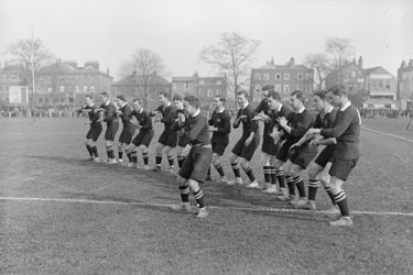 April 1916: As war rages in Europe, the All Blacks perform a gentlemanly Haka against South Africa in England [GALLO/GETTY]