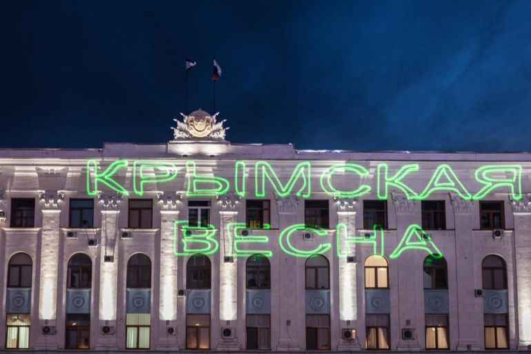 A prominent “yes” campaign saw posters promoting the idea of Crimea and Russia together, but there was no sign of a “no” campaign and pro-Ukrainian media reportedly were restricted.