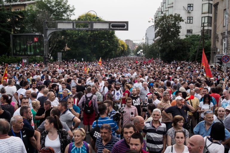 The protests were sparked in early April, when President Gjorge Ivanov issued pardons to 56 politicians and businessmen, most of them connected to the ruling party, the Internal Macedonian Revolutionary Organisation – Democratic Party for Macedonian Unity (VMRO-DPMNE).