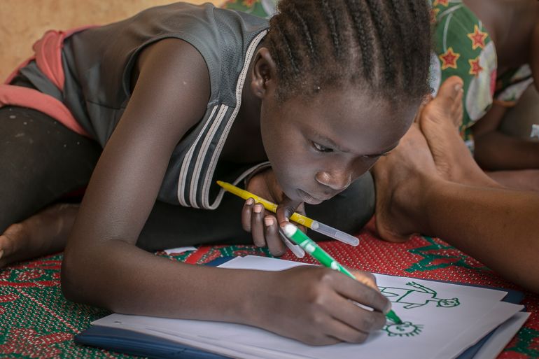 Bangui, Central African Republic – They look like ordinary schoolchildren, sprawled on mats, drawing pictures of their homes and families with felt pens, but the girls’ disturbing images depict scenes of violence – men with guns, missing limbs and lost children.
