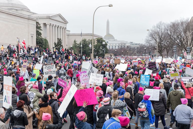 The mission statement and core values of the Women’s March evolved as the date drew near with the help of grassroots input and a dynamic group of conference organisers to centre on intersectional feminism, and include in their call “Muslims and those of diverse religious faiths, people who identify as LGBTQIA, Native people, black and brown people, people with disabilities, survivors of sexual assault”.