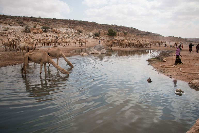 Between 20,000 and 27,000 nomadic pastoralists have been forced to travel hundreds of miles to reach coastal regions of Puntland where there was a flash of rain in December last year. There has been no rain since.