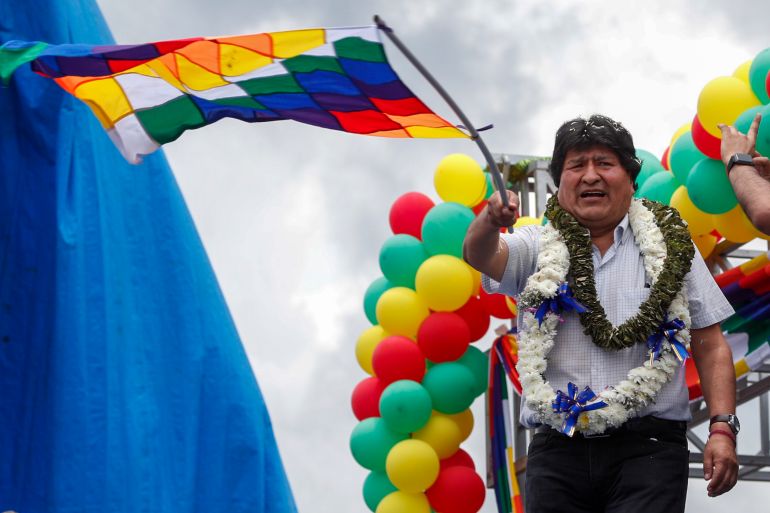 Wearing colourful traditional clothing and waving banners and the Indigenous Wiphala flag, they acclaimed Morales’s return with cheers.