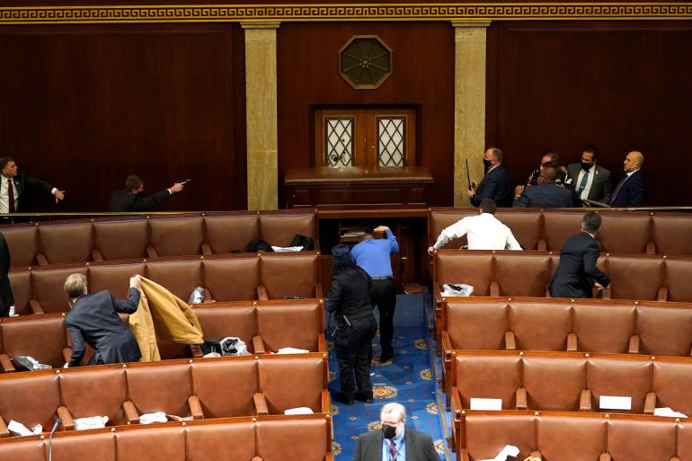 Angry supporters of President Donald Trump stormed the US Capitol on Wednesday in a chaotic protest aimed at thwarting a peaceful transfer of power, forcing lawmakers to be rushed from the building and interrupting challenges to Joe Biden’s Electoral College victory.