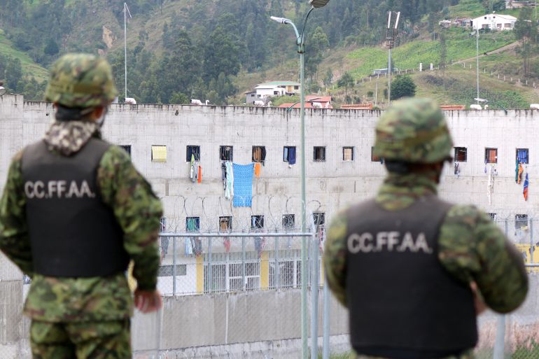 Police and troops were stationed at detention centres in the cities of Guayaquil, Cuenca and Latacunga, where gangs on Tuesday fought one another with handmade weapons in what authorities said was a coordinated outbreak of violence.