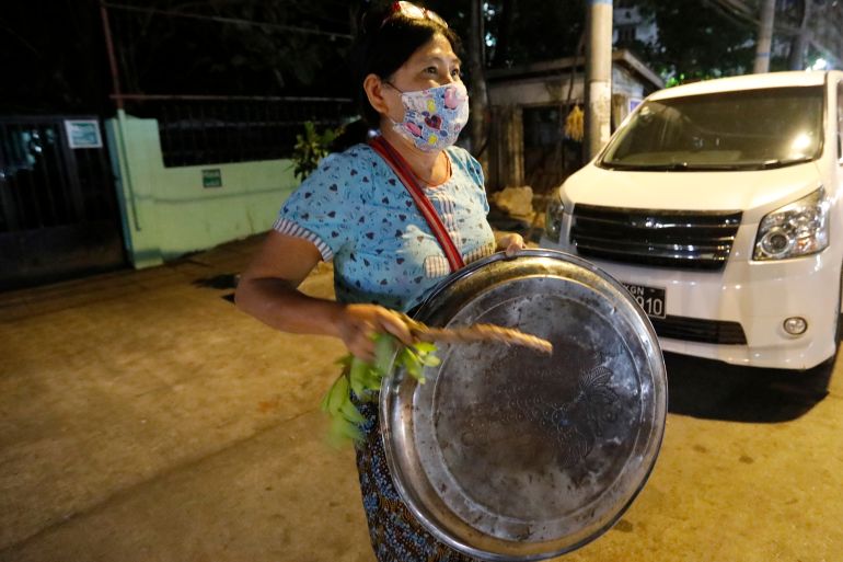 The clatter of pots and pans and the honking of car horns also rang out across the commercial capital, Yangon, on Wednesday evening for a second night in a row after calls for protests went out on social media.