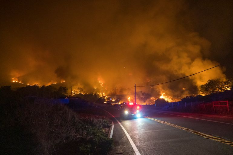 The fire started Friday night in the Palo Colorado Canyon in Big Sur and quickly spread towards the sea, fanned by strong winds up to 80km/h (50 mph).