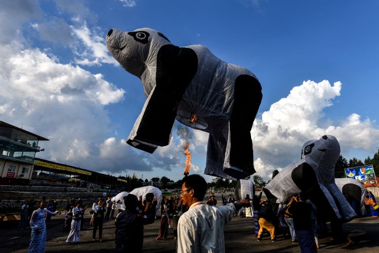 “We are holding our festival here but we are sorry for what is happening elsewhere,” said Aung Myat Thu, aged 37, who spent months working with friends on their balloon.