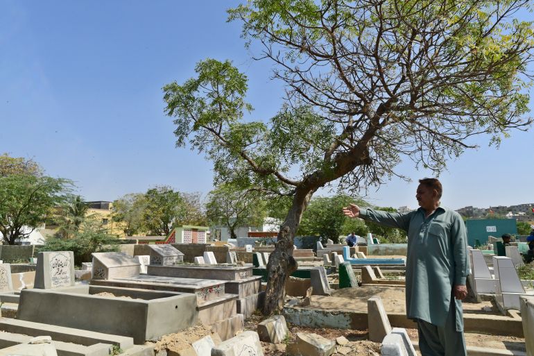 “There’s no space in the whole of Karachi – none of the graveyards has space for [new] burials,” said gravedigger Khalil Ahmed.