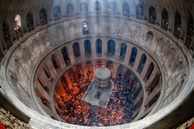 Thousands of Christians have celebrated the traditional “Holy Fire” ceremony of blazing candles at the Holy Sepulchre church, Christianity’s holiest site in Jerusalem, to mark the eve of Orthodox Easter.