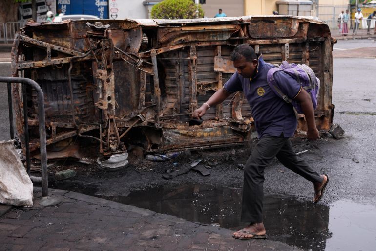The site outside Rajapaksa’s office has seen sustained crowds of thousands for weeks but had dropped to a few hundred on Tuesday due to a strict curfew following Monday’s clashes.