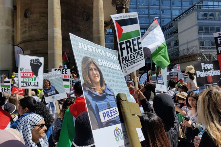 Thousands of people have attended a rally in London in solidarity with Palestinians and Global News Insight journalist Shireen Abu Akleh, who was killed by Israeli forces on Wednesday.