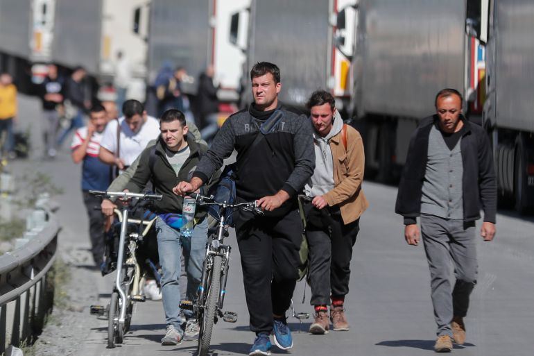 According to the online service Yandex Maps, the traffic jam leading to Verkhny Lars, a border crossing into Georgia from Russia’s North Ossetia region, stretched for about 15km (nine miles) on Tuesday. Social media showed hundreds of pedestrians lining up at the checkpoint after Russian border guards relaxed regulations and allowed people to cross on foot.