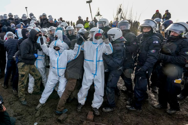 Police in riot gear have begun evicting climate activists from a condemned village in western Germany that is due to be demolished for the expansion of a coal mine.