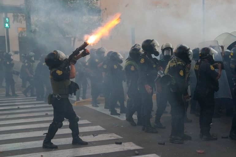 Thousands of protesters took to the streets of Peru’s capital and were met with volleys of tear gas and pellets amid clashes with security forces just hours after President Dina Boluarte called for a “truce” in almost two months of protests.