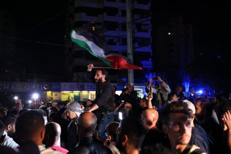 From her vantage point in the capital Tehran, she explained that demonstrators moved from the city’s Palestine Square to the French Embassy, where they chanted against the violence.