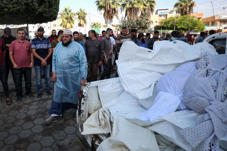 Team at Al-Aqsa Martyrs Hospital do what they can to provide last rites to those killed in Israeli attacks.