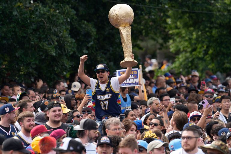 Thousands of supporters watched along the streets of Denver, Colorado as the US National Basketball Association (NBA) champion Nuggets celebrated their first league crown with a victory parade.