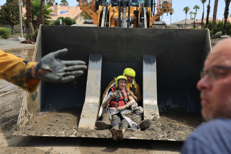Crews worked to dig roads, buildings and care home residents out of the mud across a wide swath of the southwestern United States desert, as the first tropical storm to hit Southern California in 84 years headed north, prompting flood watches and warnings in half a dozen states.