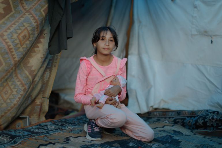 “This doll I’m holding is a gift from my mother when I was younger and we were still living in Syria,” said Hisa, 11, adding that she received it as a form of encouragement before they left Idlib, and carried it on her journey across the Syria-Turkey border. “I’m very attached to it, and I’m happy I was able to retrieve it from my house and bring it to our tent.”