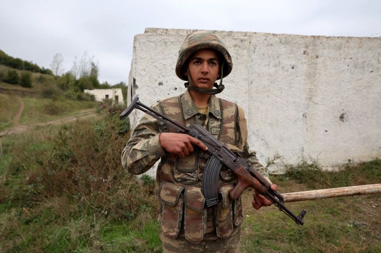 From the Shusha district, outside the regional capital Stepanakert, Azerbaijani Colonel Anar Eyvazov said his soldiers were working closely with Russian peacekeepers to conduct the demilitarisation process.