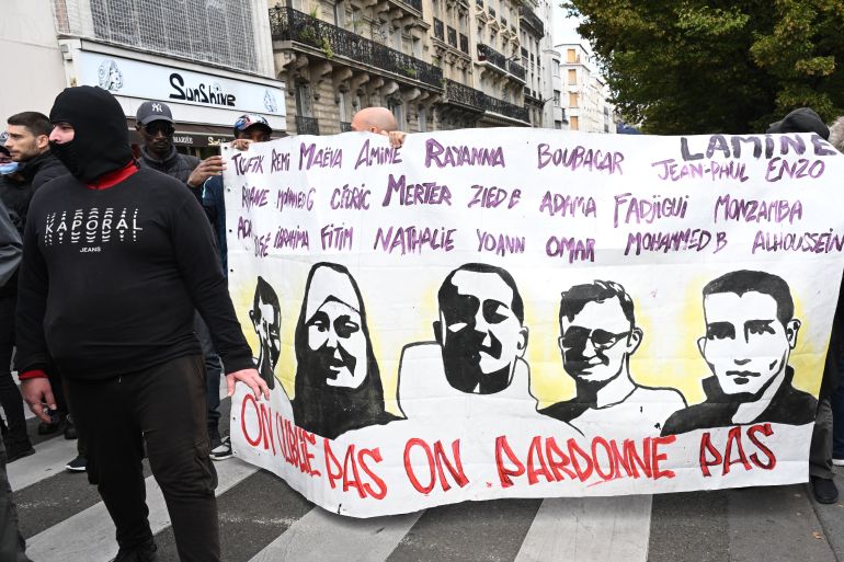 In Paris, demonstrators of all ages held placards proclaiming “Stop state violence”, “Don’t forgive or forget” or “The law kills”.
