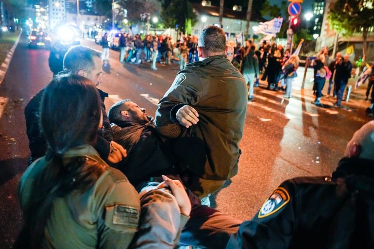 Scuffle broke out between Israeli protesters and the police in Tel Aviv as Israel’s war on Gaza continues.