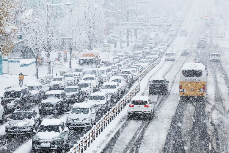 President Yoon Suk-yeol called on officials to “minimise potential damage and public inconvenience caused by the snow”, as the heavy snowfall is expected to continue until Thursday morning.