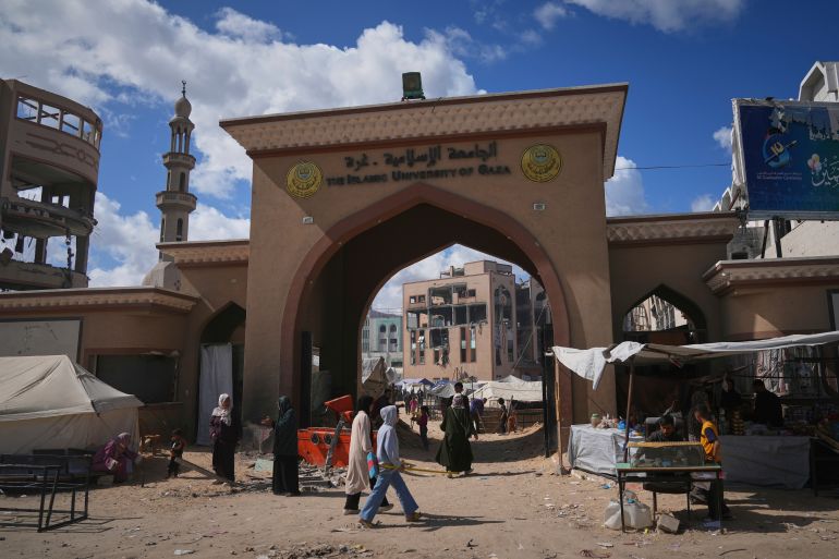 Gaza’s Islamic University turns into a shelter for hundreds of displaced families amid destruction and war.