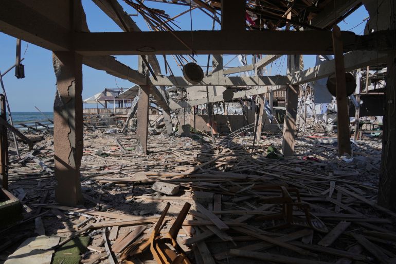Aftermath of an Israeli air attack on a Gaza cafe