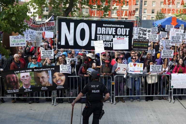 ![A man holds a placard during an event called 'March Against Sharia' in New York City on June 10, 2017 [Stephanie Keith/Reuters]](https://www.aljazeera.com/wp-content/uploads/2017/06/6681eaeb5ffd455686286dcf294192f9_18.jpeg?quality=80)