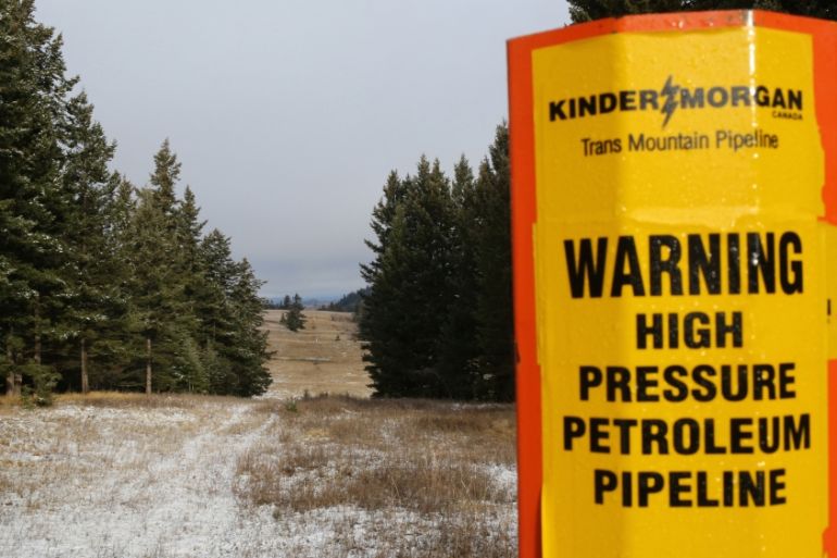 ![The federal government remains steadfast in its support for Trans Mountain [File: Reuters]](https://www.aljazeera.com/wp-content/uploads/2018/03/1af595b720184f4c98cb88f41bcbe920_18.jpeg?quality=80)