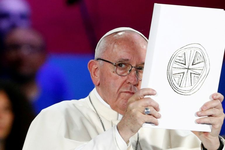 ![Candles with a picture of Pope Francis on sale at a stall in Dublin [Clodagh Kilcoyne/Reuters]](https://www.aljazeera.com/wp-content/uploads/2018/08/9bb5233f33254fa7ab7a7f870c9ef22b_18.jpeg?quality=80)