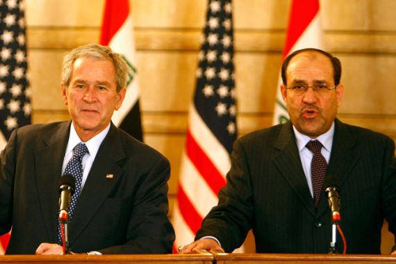 Nouri al-Maliki was strongly supported by former US president George W Bush, as was apparent in their final press conference together shortly before a shoe was launched at Bush from close range  [GETTY]