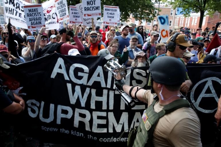 One year has passed since the “Unite the Right” rally in Charlottesville, Virginia, in which Nazis, neo-Confederates, Ku Klux Klansmen and others engaged in acts of violence, resulting in a man ramming his car into a crowd of antiracist protesters, killing one woman. The gathering of white supremacists, however shocking, was a reminder of the ubiquity and normalisation of racism in the US. The proliferation of right-wing domestic terrorists, acts of racial violence and the promulgation of government policies intended to harm racial, ethnic and religious minorities are evidence that the US has failed to come to terms with its original sin of slavery and genocide.