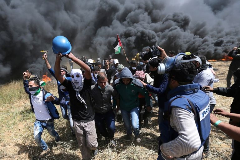 Take a look at any of their coverage: First, show a close up of Palestinians’ raised fists and open mouths and angry faces and raised flags – they are threatening, aren’t they?: violent, dangerous, and menacing. Make sure the frame of your camera is quite tight. Don’t ever open the frame to show Israeli sharpshooters nearby firing live ammunition at thousands of defenseless and unarmed civilians protesting the systemic theft of their homeland facilitated by British colonialism. That will defeat the purpose, expose the lie, and ruin the brand.