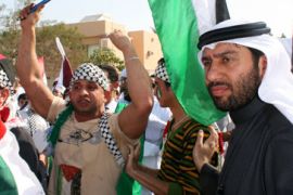 In Doha, about 15,000 people marched in a “day of anger” called by Islamic scholar Yusuf al-Qardawi.
