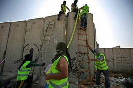 Last Friday, Palestinian youths almost toppled a segment of wall using a hydraulic car-jack in the West Bank village of Nilin.