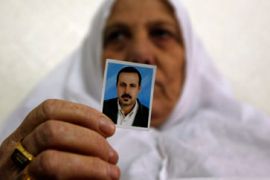 | Relatives sit beneath posters of Mahmoud al-Mabhouh [EPA] |