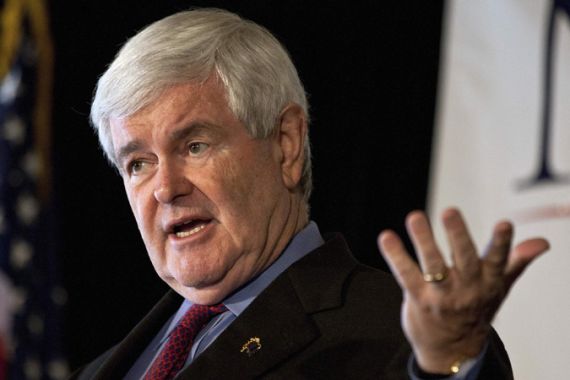 | Gingrich mocked the US policy on the Israeli-Palestinian conflict, calling it ‘out of touch with reality’ [File: Reuters] |
