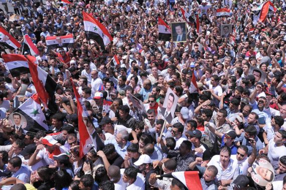 “We who love Syria’s stability and security will gather tomorrow in the country’s squares to show our big support and love for President Bashar.”