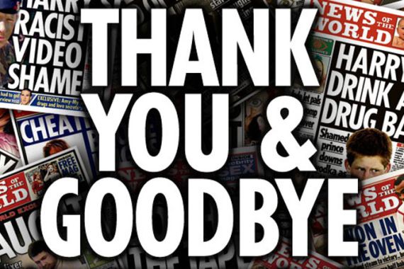 “This is not where we wanted to be and it’s not where we deserve to be, but as a final tribute to 7.5 million readers, this is for you and for the staff, thank you,” Colin Myler, the editor, told the media scrum outside its east London offices.