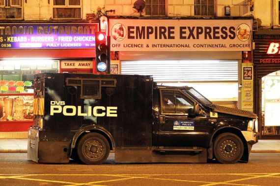 | Riot vehicles on patrol, but Turkish residents also helped keep the peace in some Hackney areas [Getty Images) |