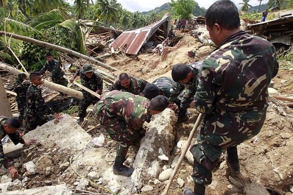 “Please do not give up, please continue searching,” the AFP news agency quoted 47-year-old Virginsita Magalso as saying, her face streaked with dirt, as rescuers picked through mounds of dirt that covered the homes of family and friends.