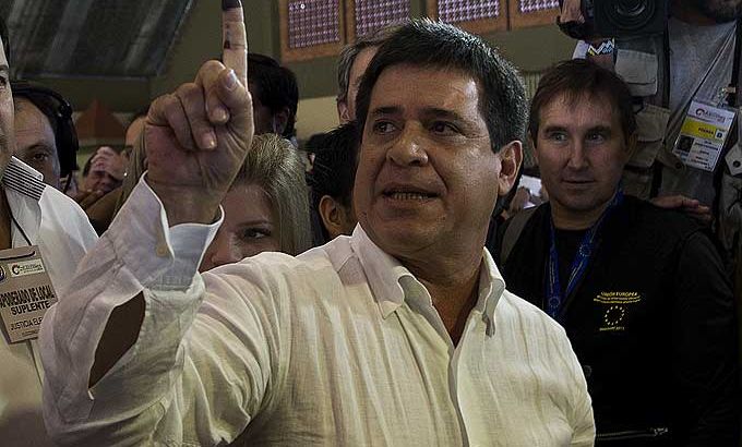 The millionaire businessman won a five-year term with 46 percent of the vote over 37 percent for Efrain Alegre of the ruling Liberal party, the Electoral Court announced after most votes were counted. Five other candidates trailed far behind.
