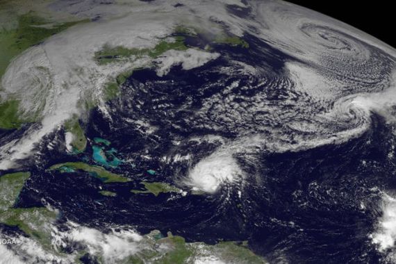 Moving northwestwards, Gonzalo took advantage of high sea temperatures and light wind shear to develop into a Category 4 hurricane, on the five point Saffir-Simpson scale. Sustained winds of 215 kph made it the strongest Atlantic hurricane since Hurricane Ophelia in October 2011.